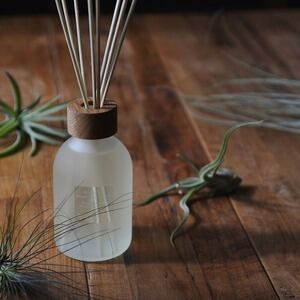 クラフトの紙管の中には、フレグランスオイルとラタンスティックがセットされ、ギフトアイテムとしてもおすすめです。ナチュラルな風合いを活かした木製キャップは、主張を抑えつつ様々なインテリアや空間に馴染みます。