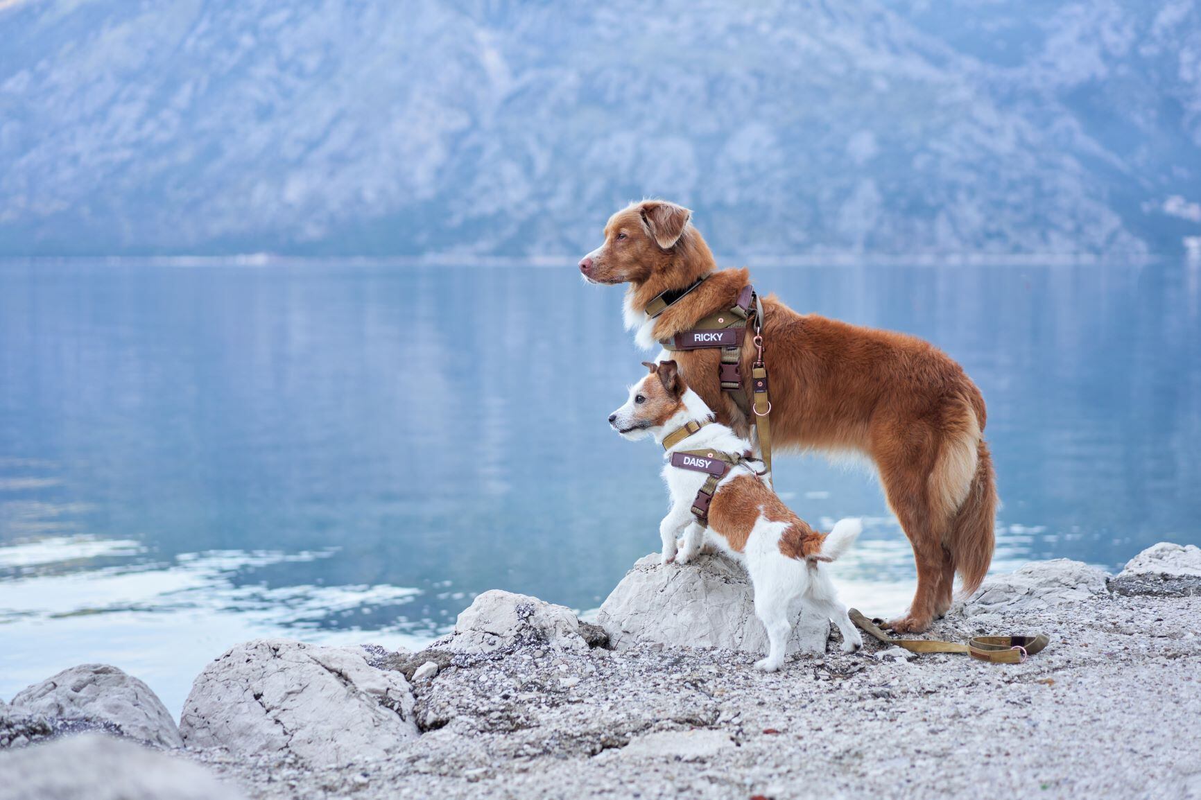 簡単に装着できるミニマルデザインのハーネスで、アクティブに動く愛犬やオーナー様に最適。内側にはEVA製のパッドがあるため、安定がよく速乾性にも優れています。上部には柔らかい樹脂つきのハンドルが付いています。反射素材付き。別売りでお好きな名前入りラベルに付け替え可能。