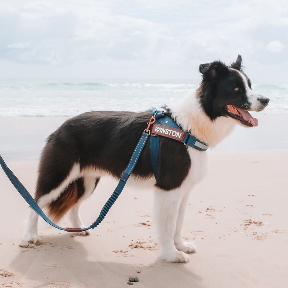 簡単に装着できるミニマルデザインのハーネスで、アクティブに動く愛犬やオーナー様に最適。内側にはEVA製のパッドがあるため、安定がよく速乾性にも優れています。上部には柔らかい樹脂つきのハンドルが付いています。反射素材付き。別売りでお好きな名前入りラベルに付け替え可能。