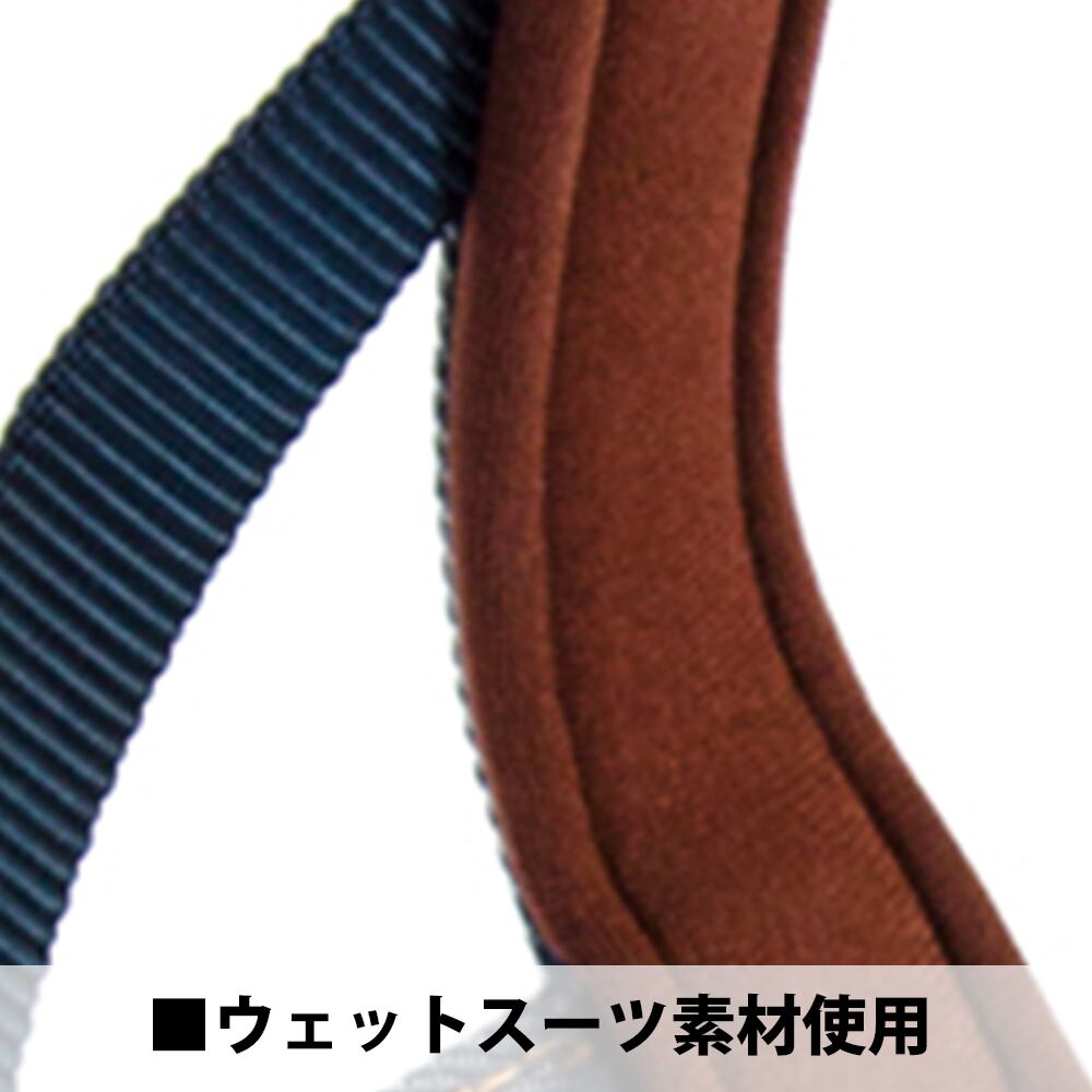 首から通して、わきの下でバックルを留めるだけの簡単装着なので、通常のカラーやハーネスが苦手な愛犬やオーナー様に最適です。胸に当たる部分にはウェットスーツ素材を使用し、肌にも優しい。反射機能付。