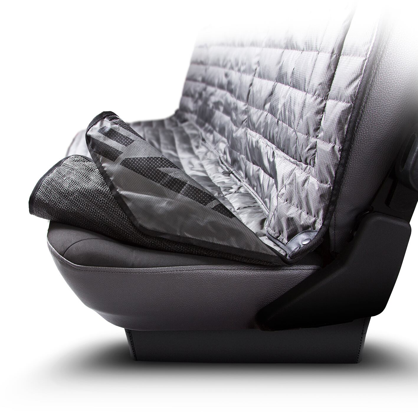 特殊加工ナイロン*にキルティング加工を施した耐久性に優れた車用シートカバーは、丈夫で肌触りも良い作り。裏面の滑り止め加工がずれを防止するので、愛犬が快適に過ごせてシートも保護されます。シートに合わせてサイズ調整可能。後部座席用シートカバーで、イージードッグのシートベルト用品と一緒に使える仕様。