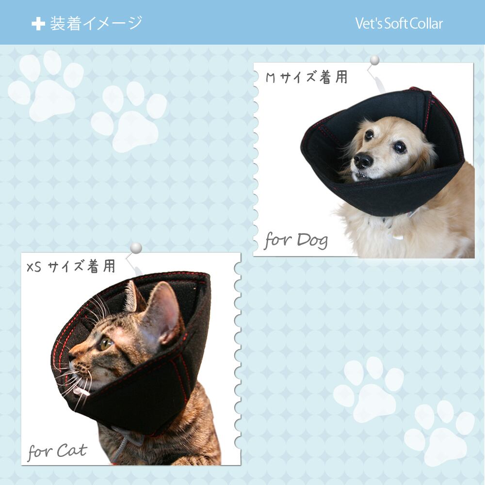 ●ケガや手術後に、傷口をなめたりひっかいたりする事をやめさせ、悪化をやさしく防ぎます。