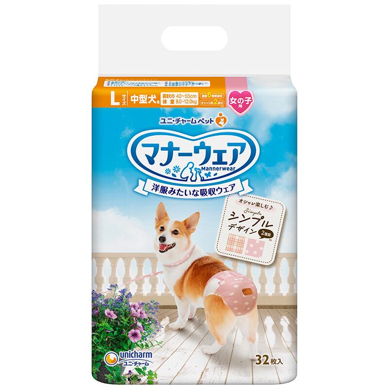 ユニ・チャーム マナーウェア 女の子用 Lサイズ モーヴピンクドット・チェック 32枚